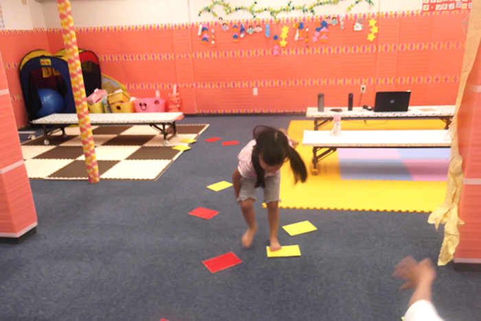 明るく広々したスペースで安心して体を動かすことができます。また、壁面や柱にはクッション材を貼り付けておりますので安全面での配慮も行なっております。